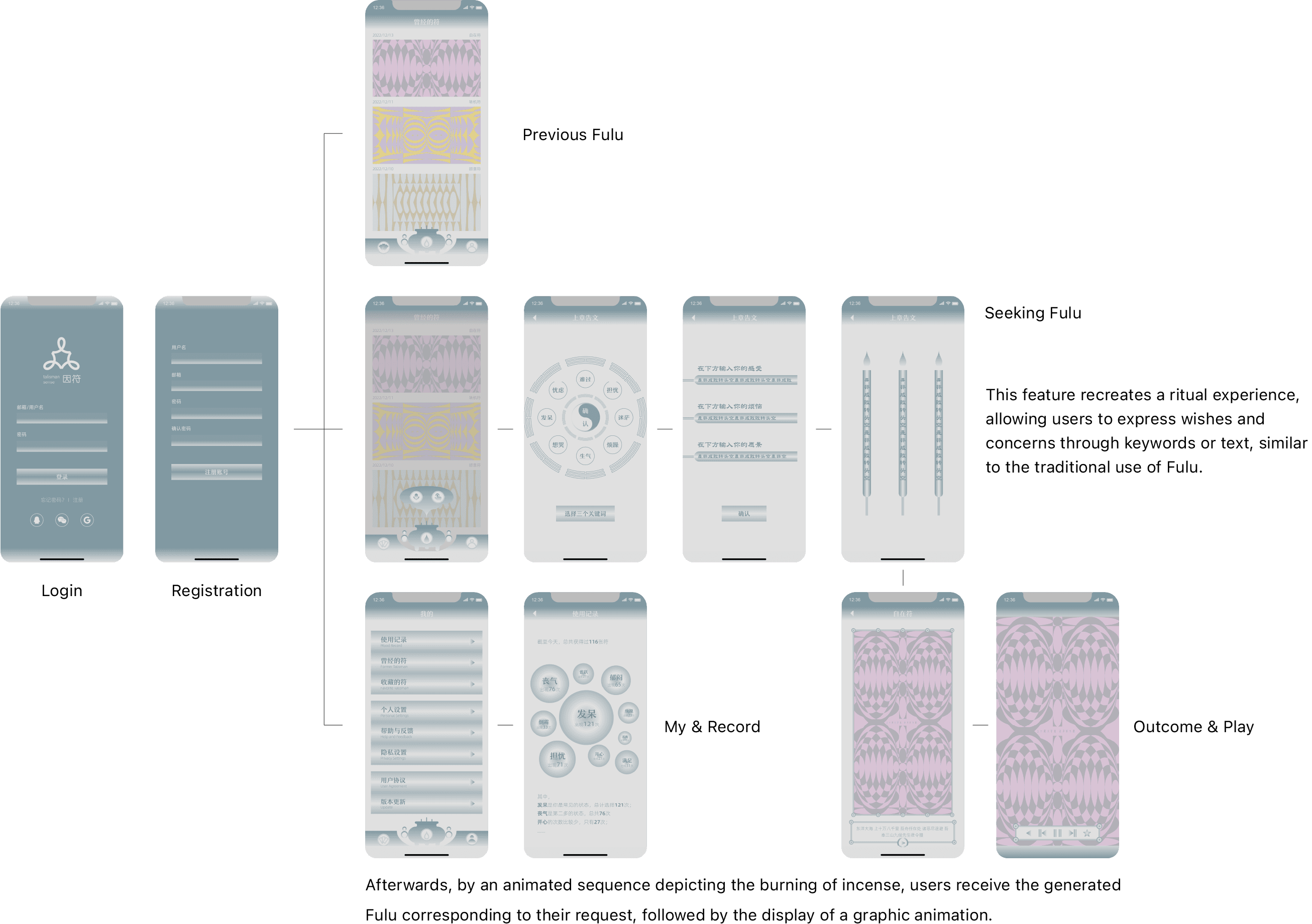 This project revolves around the core theme of China's Fulu culture. In ancient China, people believed that these characters and symbols had magical powers, enabling them to use the forces of spirits and gods.